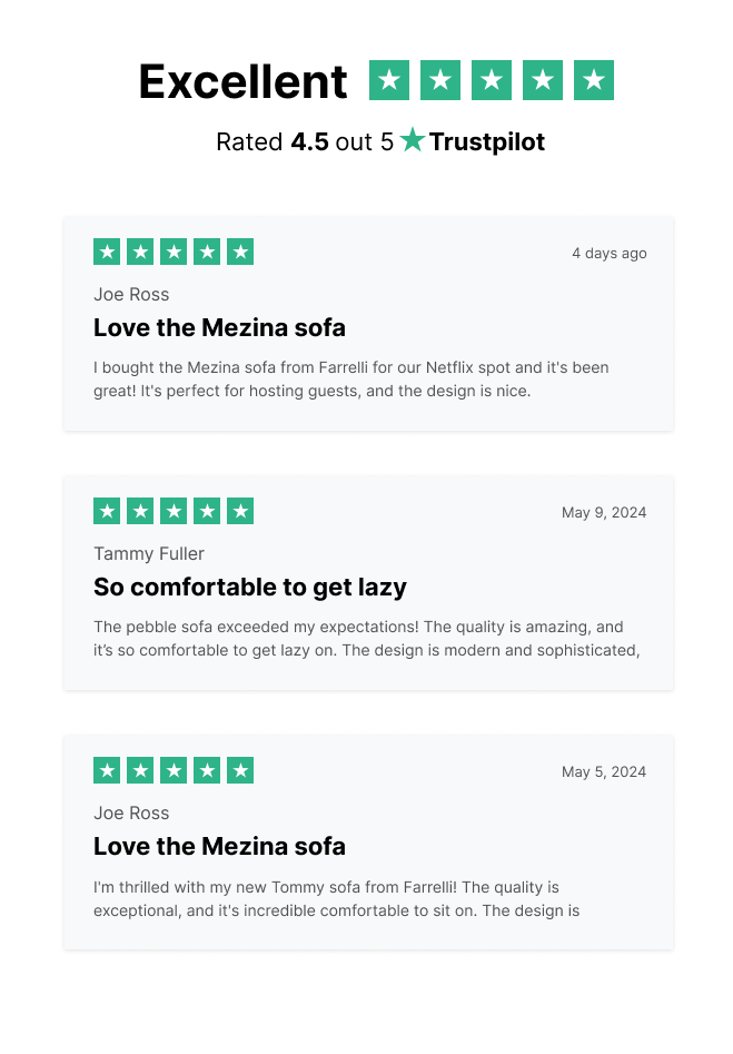 At Farrelli, we're committed to helping you bring your unique vision to life. That's why our team of expert designers is happy to offer complimentary interior design consultations to all our customers.