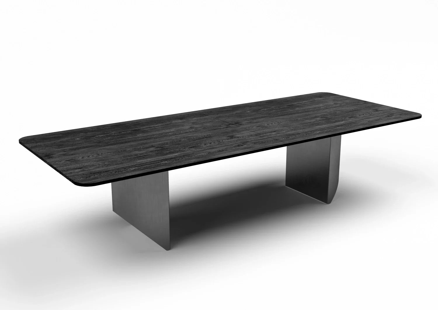 A masterful interplay of mass and lightness, the Bryce 10-Seater Wooden Top Dining Table redefines balance through bold, sculptural volumes and subtle visual illusion. With semi-circular legs tapering into angled chisel-like tips, the table appears to float—a dynamic tension between weight and air.
