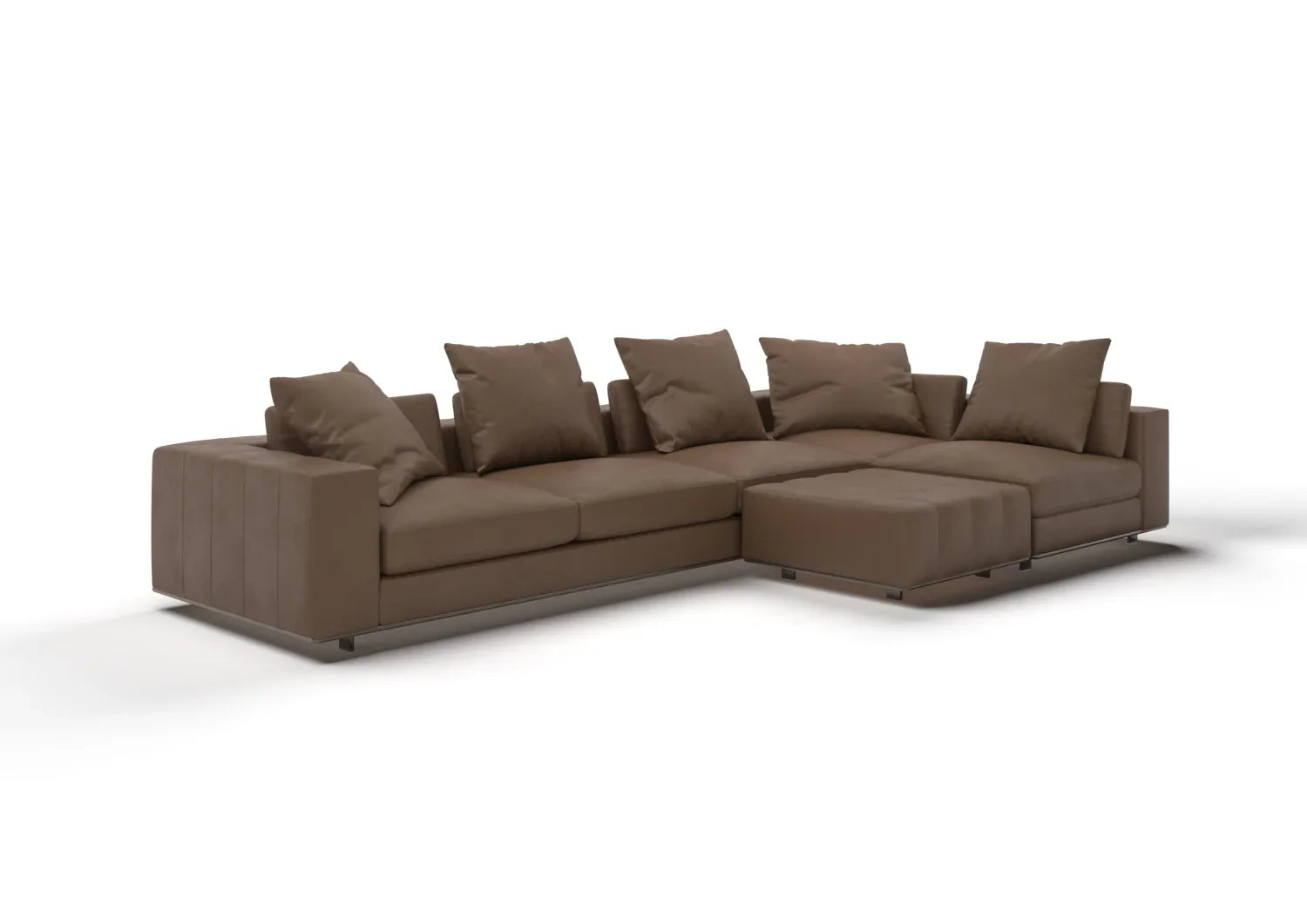 Eli 4-Seater Leather Sofa with Ottoman Set redefines interior versatility through a fusion of refined aesthetics, sophisticated construction, and supreme comfort. A seating system with a split personality: a soft, inviting core identity that encourages total relaxation and a spirited alter-ego that reveals a more dynamic and contemporary mindset. This modular system offers dynamic compositions that adapt effortlessly to modern lifestyles.