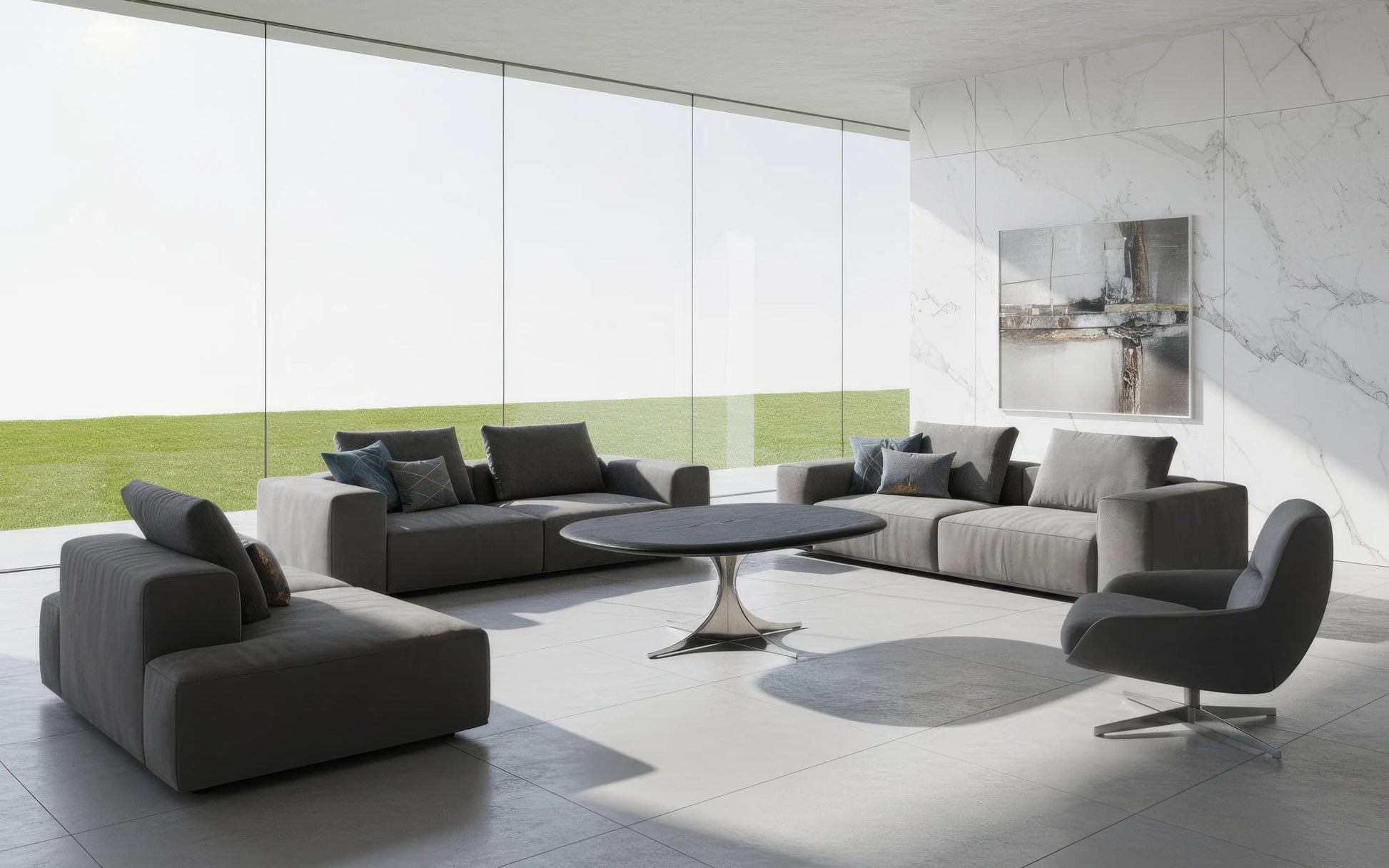 • Sleek reflective surfaces that highlight light and shadow play