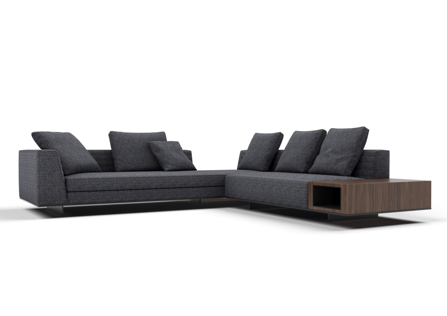 • Sculpted silhouette features gently sloped or sharply angled modules with luxurious proportions