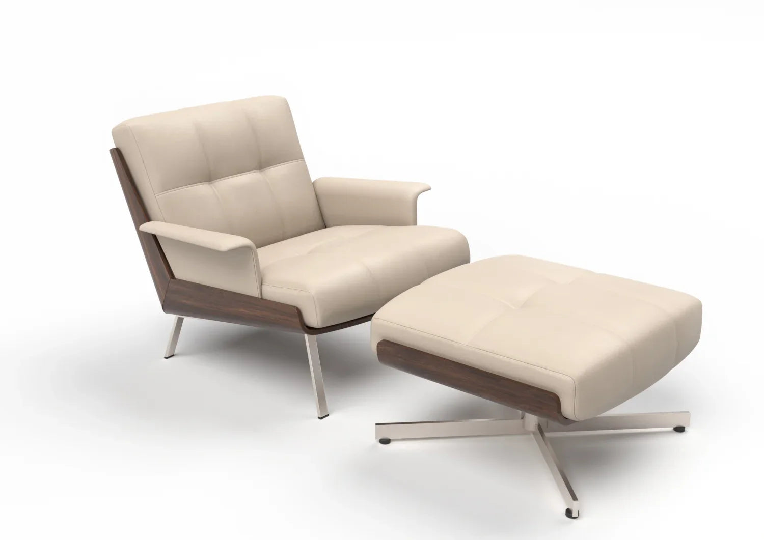 Kestrel Leather Armchair & Ottoman Set with Cross Leg Base