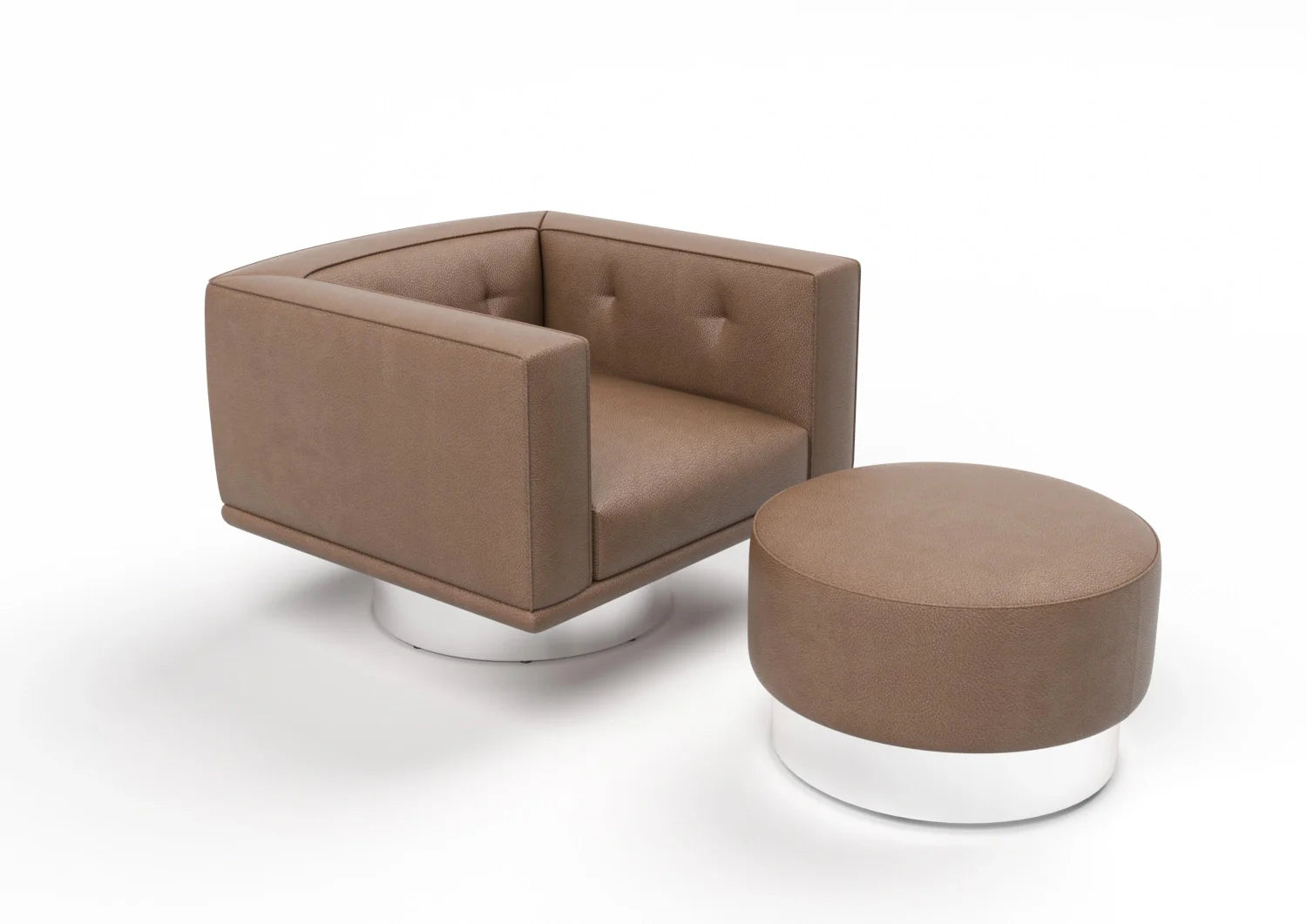 Rooted in the discipline of modernist design, the Marco Ergonomic Cow Leather Lounge Chair Set presents a refined expression of proportion and architectural softness. Its sculptural form is anchored by a concealed swivel base, offering fluid motion while maintaining clean lines. A cradle-style backrest arcs gently around the seat, creating an enveloping profile that subtly balances comfort with structure. Tailored top-stitching along the backrest and arms lends a bespoke sensibility, while removable elements allow ease in maintenance without compromising design integrity.
