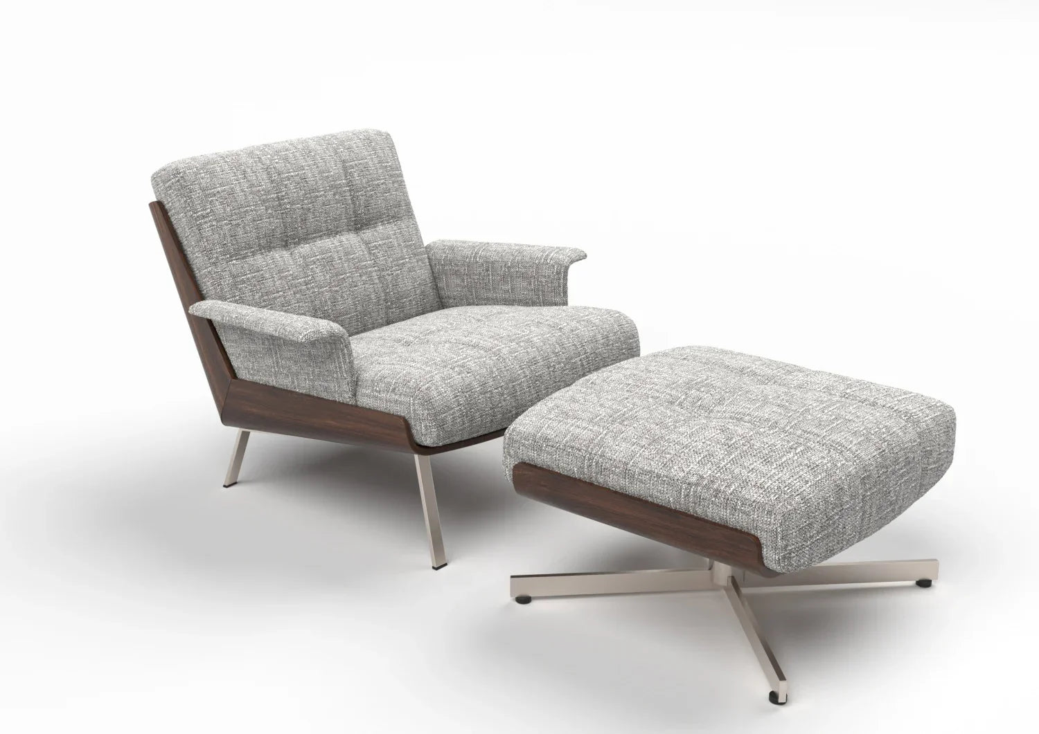 A refined composition of Japanese influence and Brazilian sensibility, the Mena Bouclé Armchair & Ottoman Set with Cross Leg Base expresses architectural intent through its sculptural shell and rich material language. It reflects the purity of form found in mid-century design while embracing modern craftsmanship. The structure’s angled joinery, precise stitching, and enveloping wood casing deliver both poise and performance. A balance of organic tactility and engineered comfort, this piece is destined to anchor curated interiors with cultural depth.