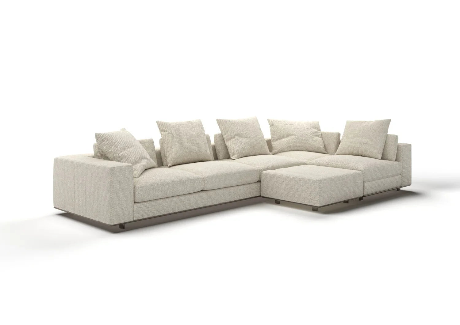 Theo 4-Seater Fabric Sofa with Ottoman Set redefines interior versatility through a fusion of refined aesthetics, sophisticated construction, and supreme comfort. A seating system with a split personality: a soft, inviting core identity that encourages total relaxation and a spirited alter-ego that reveals a more dynamic and contemporary mindset. This modular system offers dynamic compositions that adapt effortlessly to modern lifestyles.