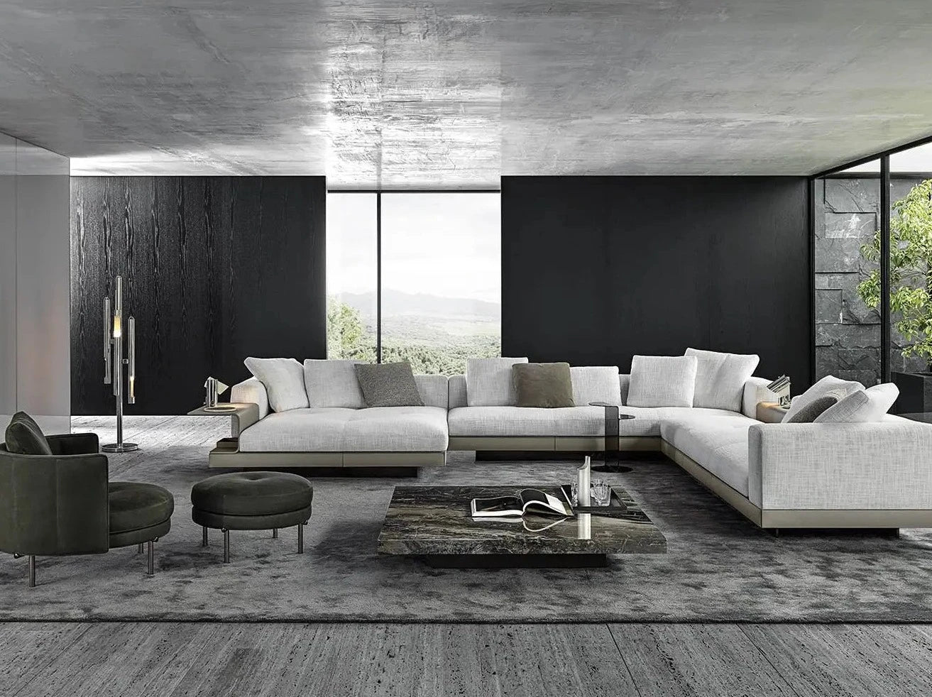 Sculpted with architectural clarity and refined with couture-level detail, the Usher 4-Seater Leather Lounge Sofa with Chaise exudes quiet sophistication. Rooted in Mid-Century American elegance, its continuous volumes, tailored finishes, and floating base create a harmonious contrast between form and comfort—inviting versatile compositions and timeless style.