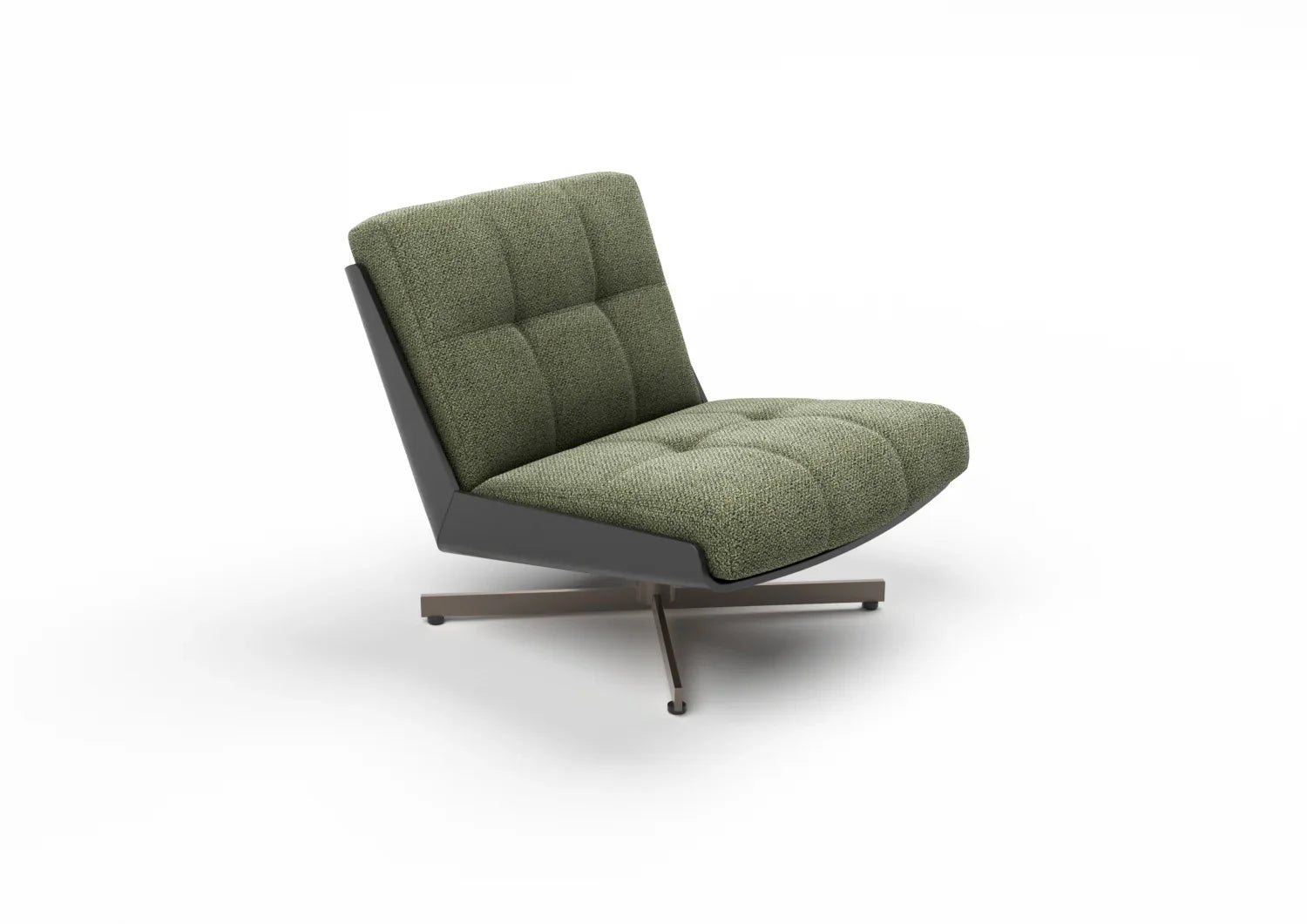 A refined composition of Japanese influence and Brazilian sensibility, the Vivienne Fabric Swivel Chair with Cross Base expresses architectural intent through its sculptural shell and rich material language. It reflects the purity of form found in mid-century design while embracing modern craftsmanship. The structure’s angled joinery, precise stitching, and enveloping wood casing deliver both poise and performance. A balance of organic tactility and engineered comfort, this piece is destined to anchor curated interiors with cultural depth.